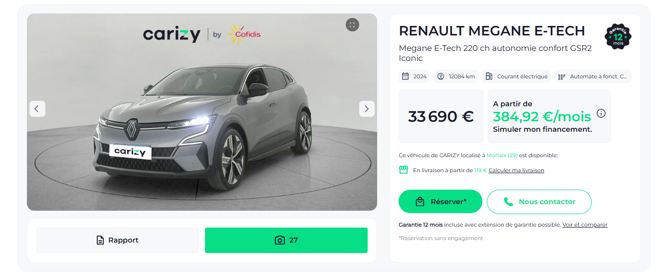 Acheter une voiture électrique avec Carizy